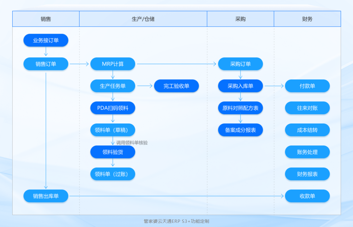 管家婆天通ERP针对化妆品生产行业提供专业解决方案,助力企业实现业务、生产、财务的一体化管理,构建灵活高效的运营体系。
